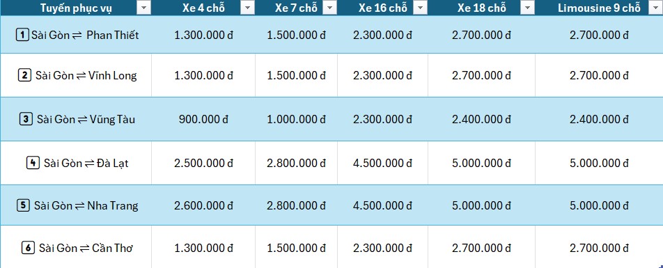| Đưa đón / trả khách tận nơi: Địa điểm và thời gian đưa đón/trả khách linh hoạt theo lộ trình thực tế hoặc yêu cầu cụ thể. | ||